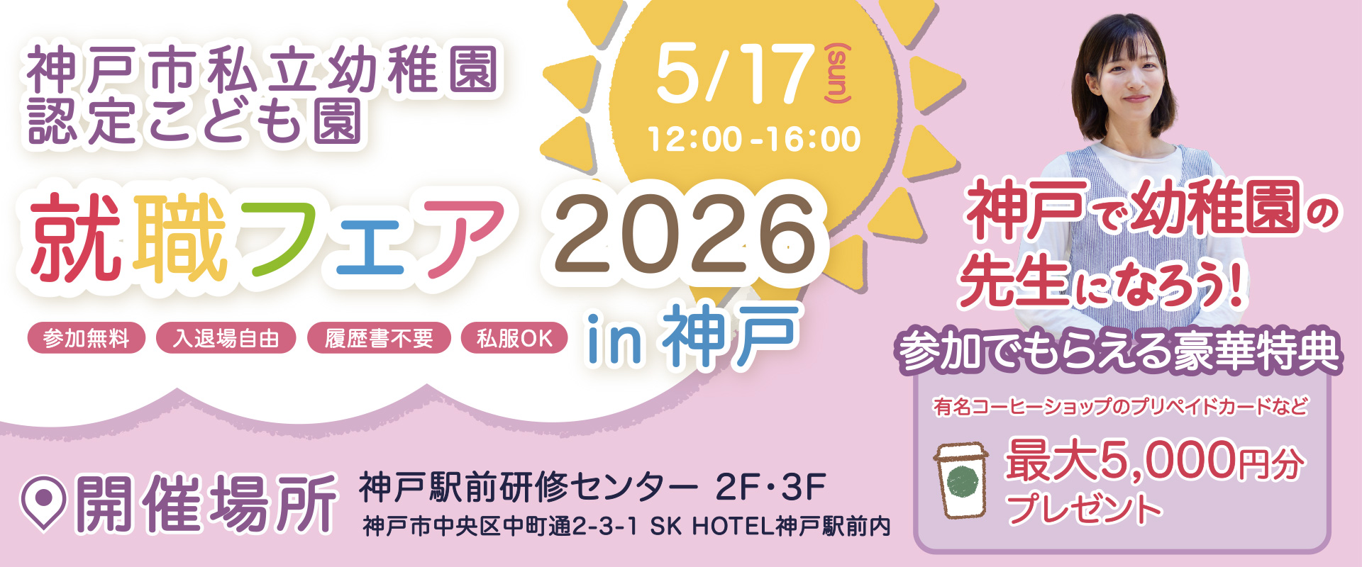 5月19日 神戸市私立幼稚園認定こども園就職フェア2024を開催します